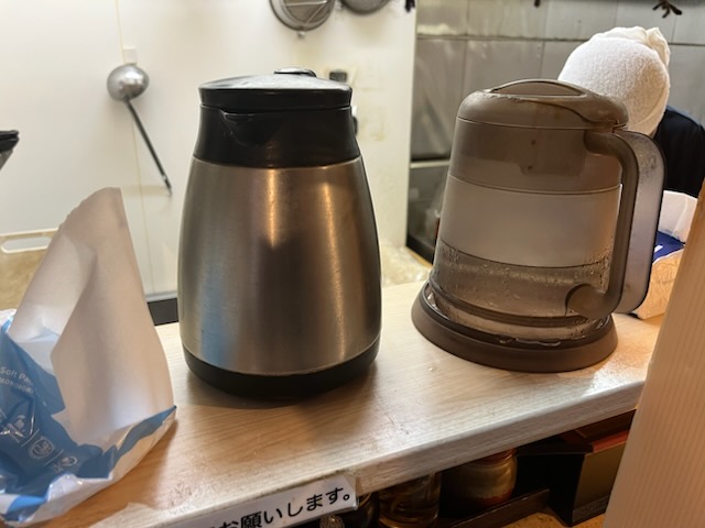 つけ麺注文時は、着丼と同時にスープ割りが提供される。