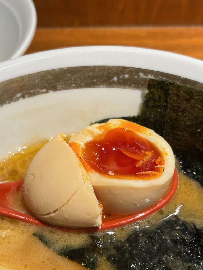 味玉はしっかりと味が染みていて、噛んだ瞬間に旨味が広がるタイプ。半熟の黄身のコクも相まって完成度が高い。